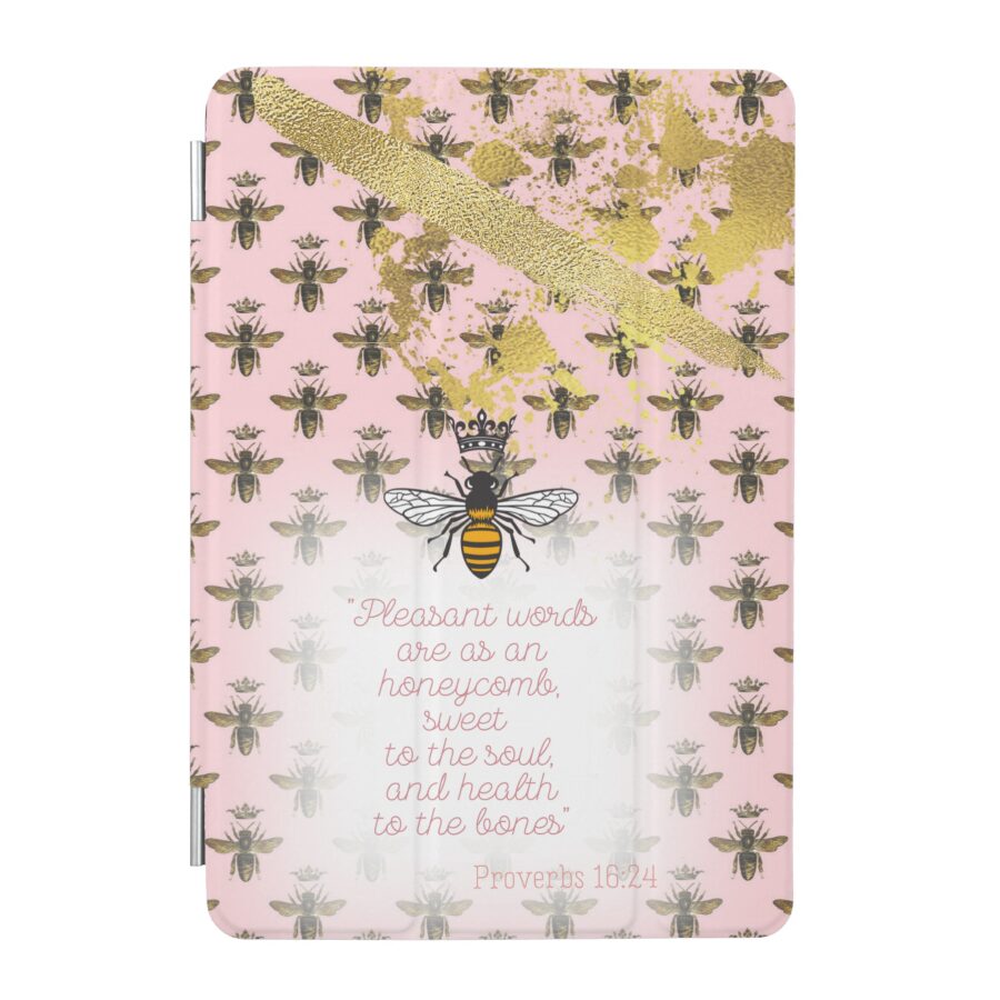 Share the Gospel through what you carry daily. Decked with the Blush Bee design: a soft pastel pink base styled with a refined honeybee grid, showcasing a bottom-center scripture overlay on sheer white anchored by an elegant queen bee emblem and a gleaming gold splash detail in the upper right. Premium specialty printing on trusted brands.