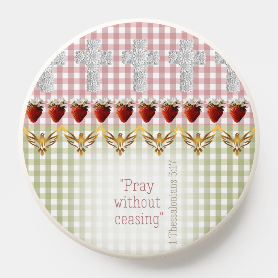 Girly faith expression combines with modern tech. Decked with the Heaven’s Cross design: a light-hearted yet reverent pastel check pattern in blush and sage hues, woven with Bible scripture and repeating icons of white floral crosses, strawberries, and gold doves. Compatible with iPhone 12 and newer models. Premium print customization services on trusted brands.